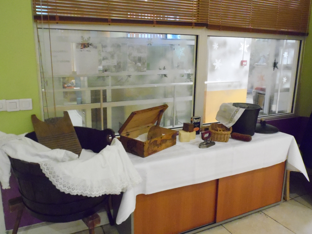 Elle est arrivée le matin avec beaucoup d'objets et de vêtements pour transformer notre salle d'animation en une blanchisserie d'Antan. fession et de sa