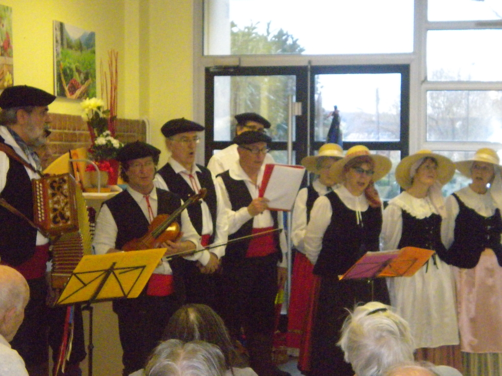 En ce samedi 9 avril 2016, nous avons accueilli un groupe folklorique Gascon de 18 participants. Il y avait parmi eux plusieurs accordéonistes, un violoniste, des chanteurs et des danseurs. Les costumes traditionnels étaient magnifiques et chatoyants.